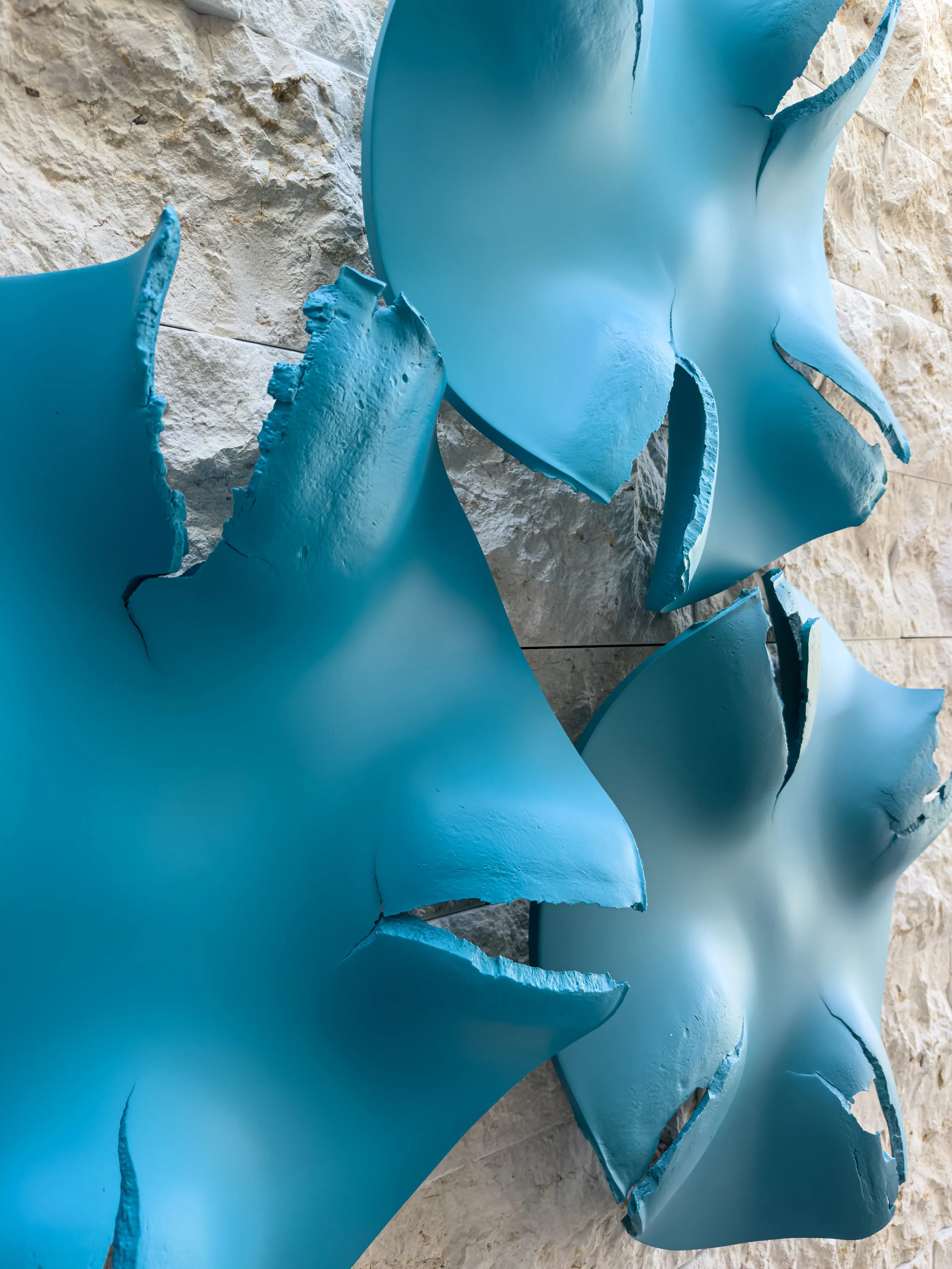 In situ, 44” x 46” x 7”, 72 pounds, wall mounted.